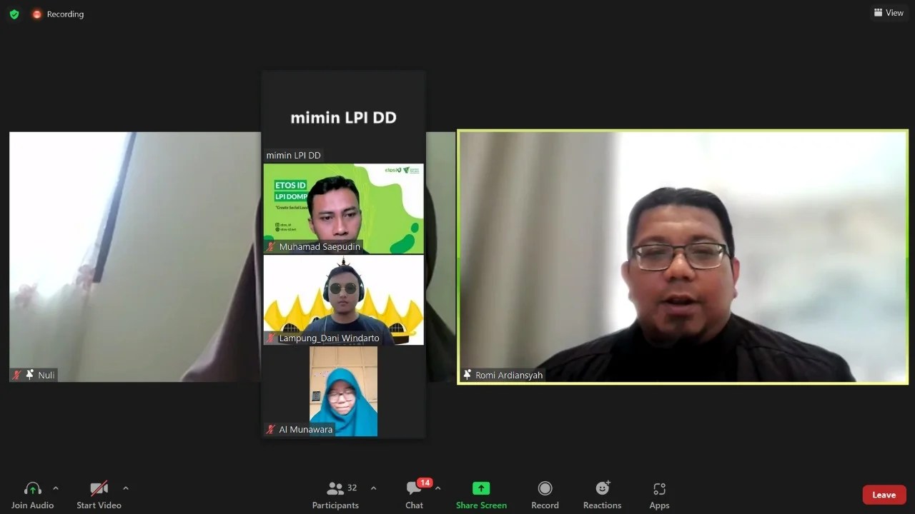 Kegiatan daring yang dihadiri 26 Fasilitator Etos ID dan 3 Pendamping TESPro diharapkan mampu mengembangkan kompetensi dan kinerja para fasilitator daerah dari waktu ke waktu. (RA-AR)