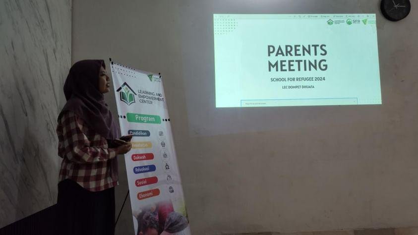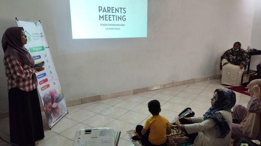 Jum’at, 26 April 2024 telah diadakan acara Parents Meeting di LEC (Learning and Empowerment Center) Dompet Dhuafa. Sebanyak 17 orang tua siswa dan 27 siswa berkumpul untuk menghadiri acara tersebut, sebuah kesempatan yang ditujukan untuk menyampaikan tujuan program School for Refugee secara lengkap kepada orang tua siswa.